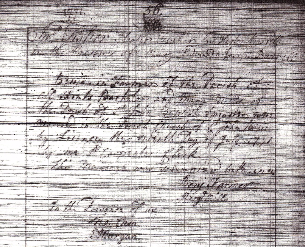 On 7th Jul 1771, Mary married Benjamin Farmer at St. John's Parish Church in Hereford, Herefordshire, England.